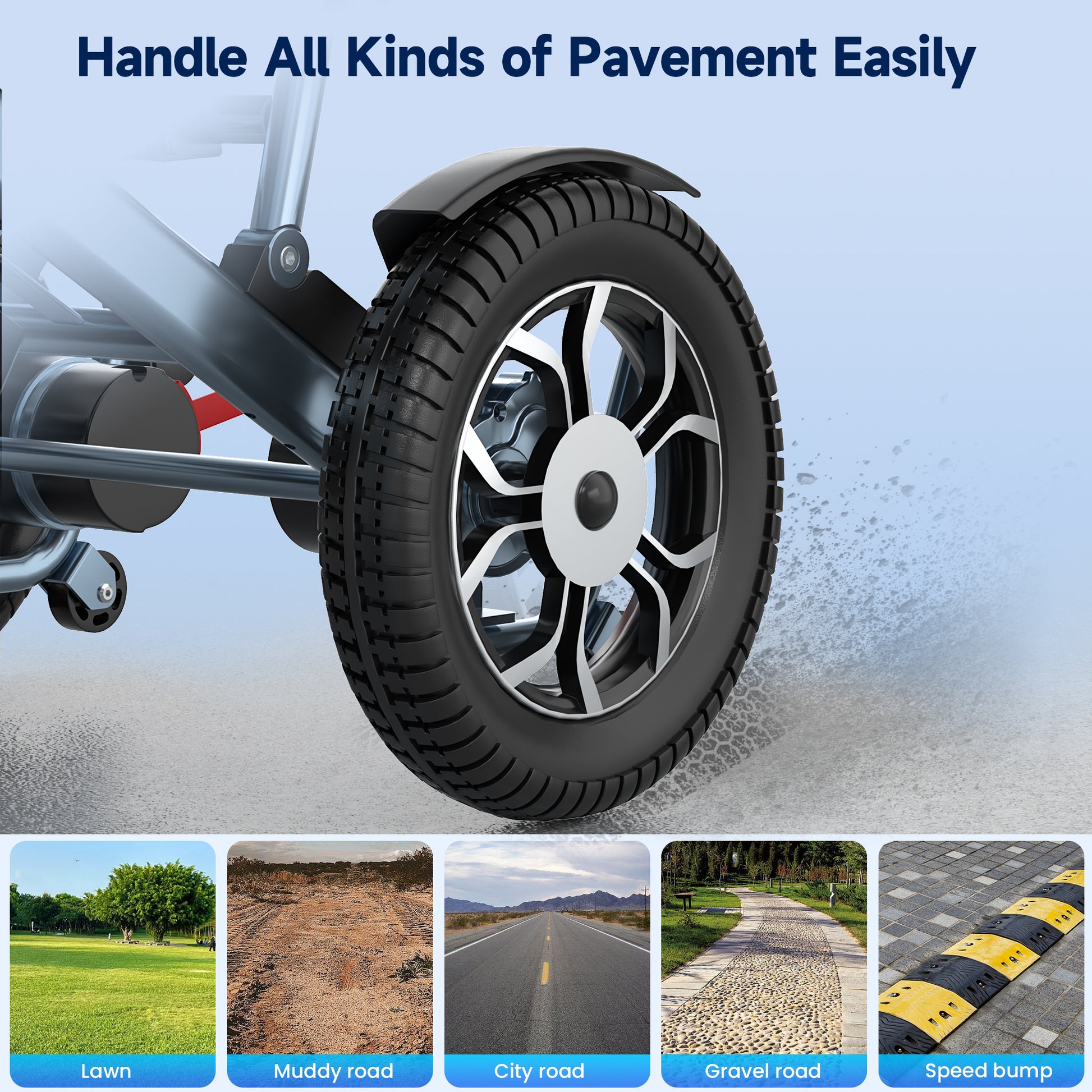 Meet the 59-lb foldable electric wheelchair that feels like it’s built from air yet rides like a tank. Its ultralight aluminum frame and featherweight lithium battery team up with a red coil suspension that soaks up every crack in the sidewalk, while a reflective back strip and handy pockets quietly keep night rides safe and your stuff close.