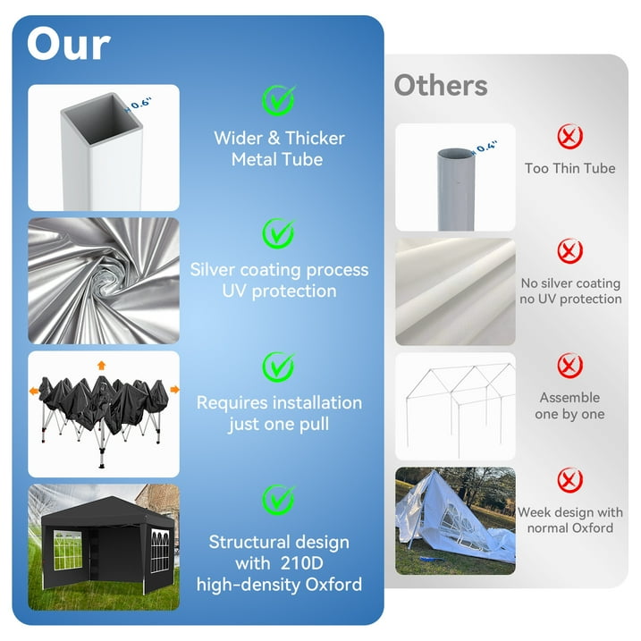 Vecukty 10' x 10' Black Sturdy Pop Up Canopy Tent, Removable Sidewalls