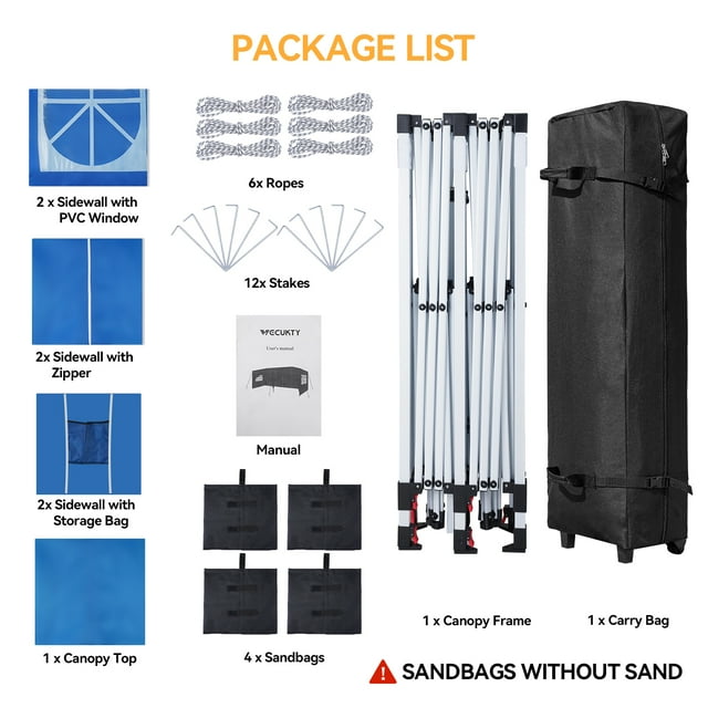Vecukty 10 x 20 ft Blue Pop up Outdoor Canopies, Removable Sidewalls