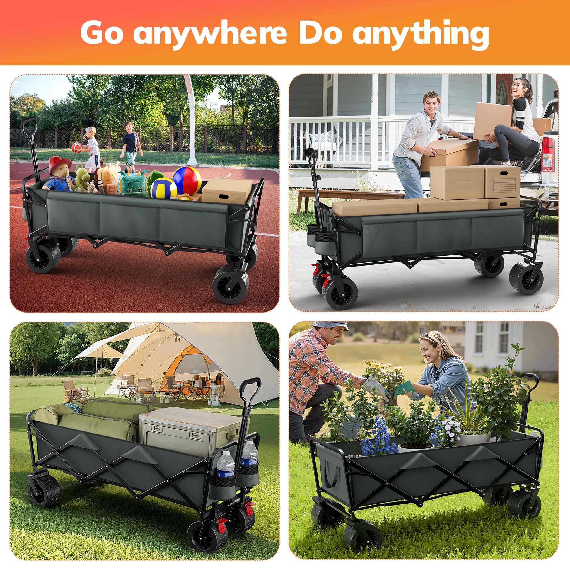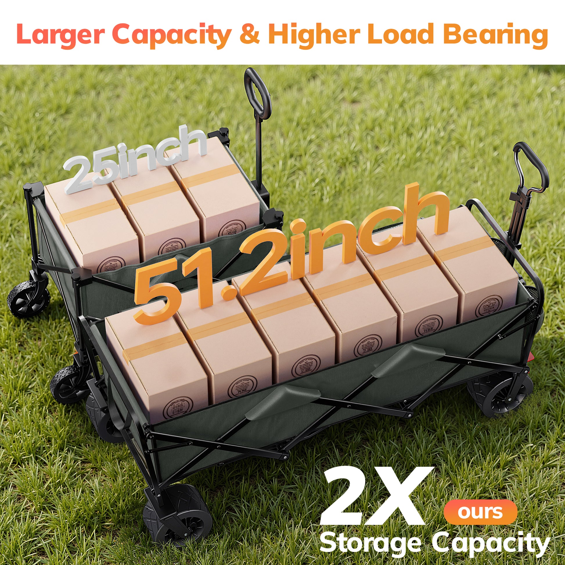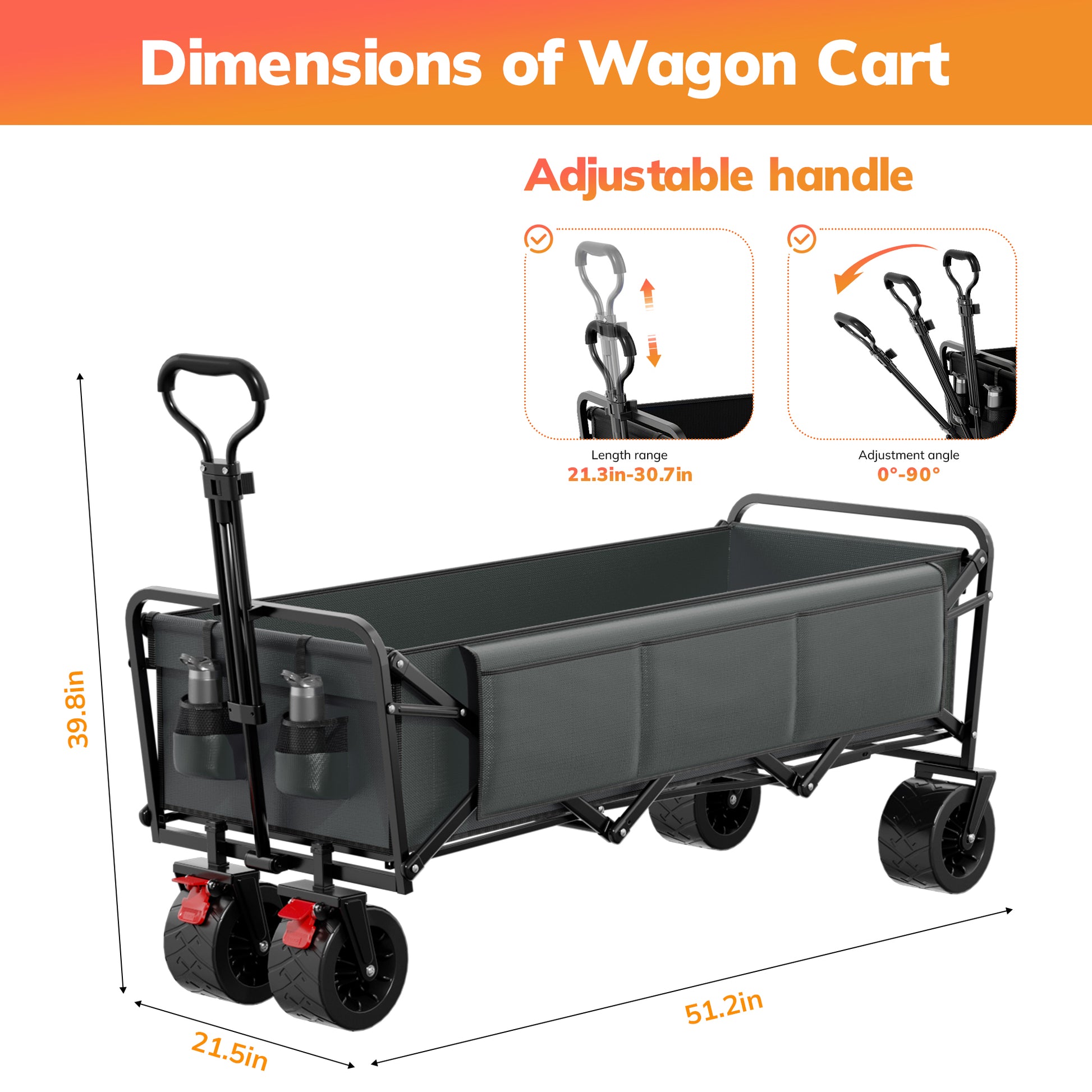 Vecukty 51.2" Large Collapsible Folding Wagon Cart, 560 lbs Load Capacity, Heavy-Duty Steel Frame & Oversized Wheels for Grocery Shopping, Camping, Sports, Moving – Gray
