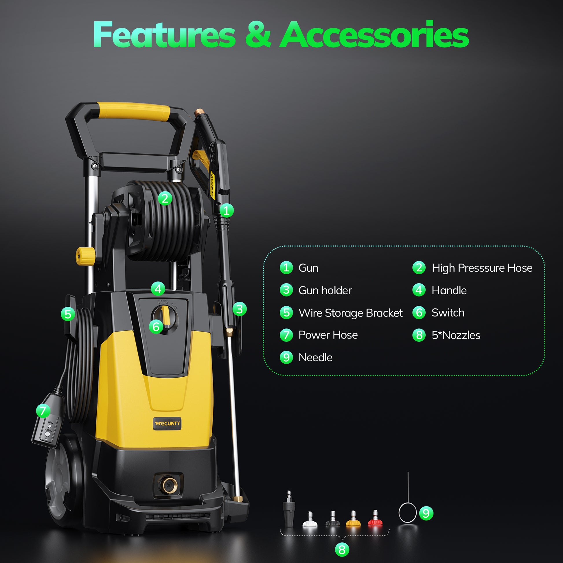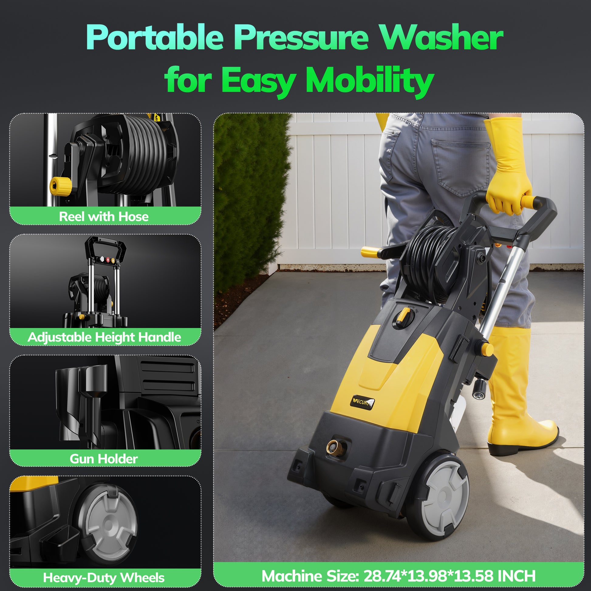 VECUKTY Electric Pressure Washer,4500 PSI Max 3.2 GPM Power Washer with 35FT Cord,20FT Hose,Retractable Handle,5 Quick Nozzles,Foam Cannon for Car Garden Patio