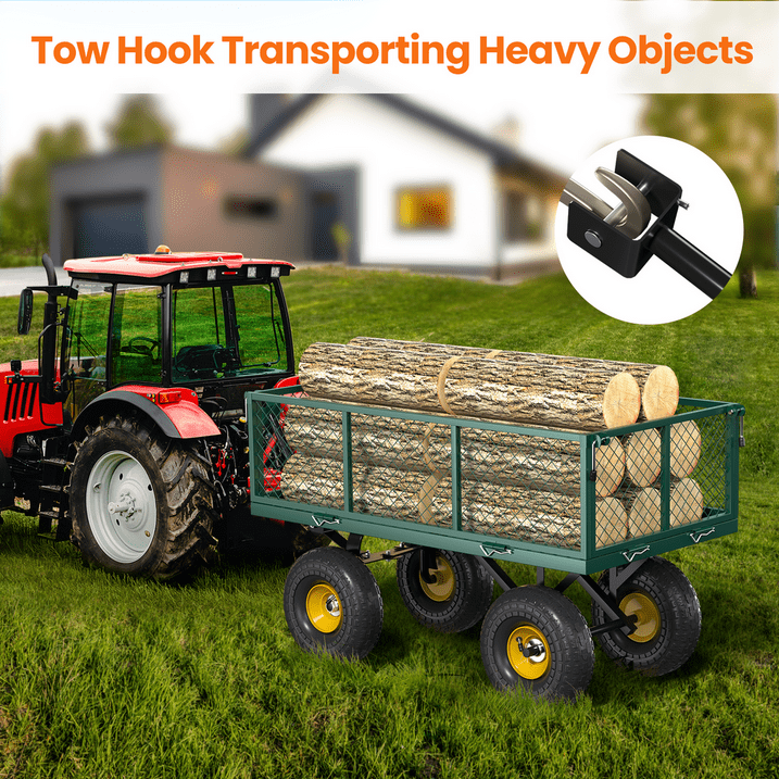 - 🌶️【Transform into a Flatbed】With the ability to easily transform into a flatbed cart by removing the mesh sides, our lawn utility cart offers increased space and enhanced practicality. This allows you to transport various materials with ease and efficiency.