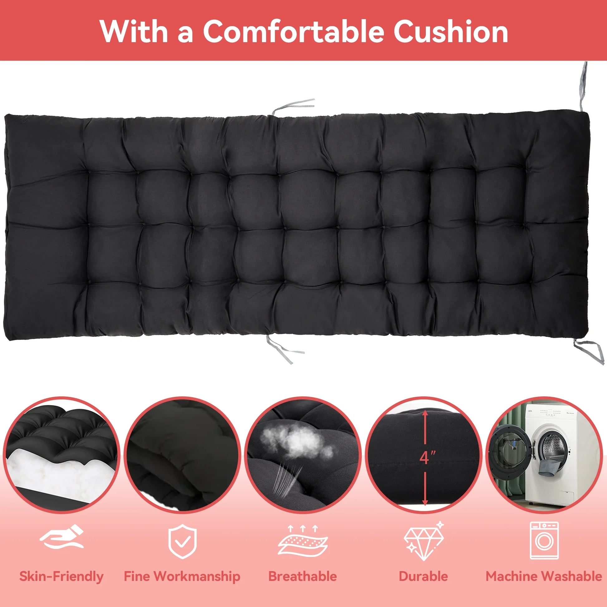 <p>Thick padded cushion & contoured armrests for full-body support.</p>